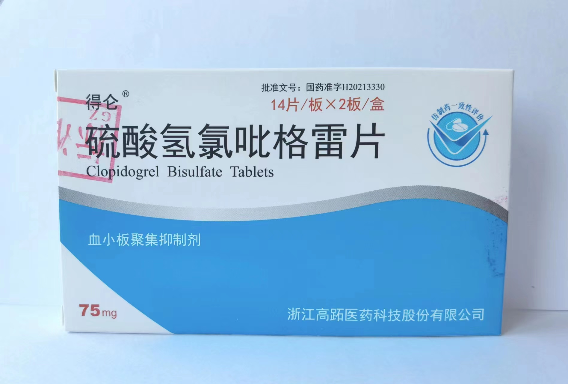 简介: 硫酸氢氯吡格雷片 包装:每盒装28片 医保类别:医保无限制 , 基药 批准文号: 国药准字H20213330 适应症:预防动脉粥样硬化血栓形成事件。详见说明书。 生产厂家:浙江高跖医药科技股份有限公司