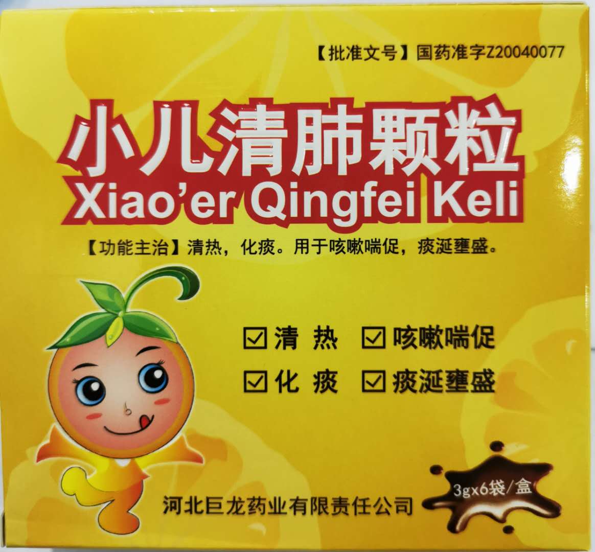 简介: 小儿清肺颗粒(处方药)3g*6袋 全国独家品种 第四类新药 批准文号:国药准字Z20040077 适应症:清热,化痰。用于咳嗽喘促,痰涎壅盛。 生产厂家:河北巨龙药业有限责任公司